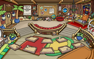Like the Ship Hold, various things are stored here, although much less in comparison. Some of the objects are dear to Rockhopper, such as the Friendship Bracelet I received from Bambadee, and the camera I received from Aunt Arctic. On the wall, there is a Notice Board, which always has notes and pictures of things Rockhopper wants to do on his current visit.