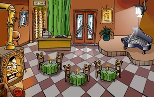22) Pizza Parlor: The Pizza Parlor is a restaurant located in the Plaza. It is a popular place to go and eat and is often crowded. It also features a stage and grand piano. Players can play Pizzatron 3000 in this room.