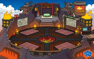 36) Fire Dojo: The Fire Dojo is a room in Club Penguin Rewritten atop a volcano in the mountain range. Card-Jitsu Fire is able to be played in this room.