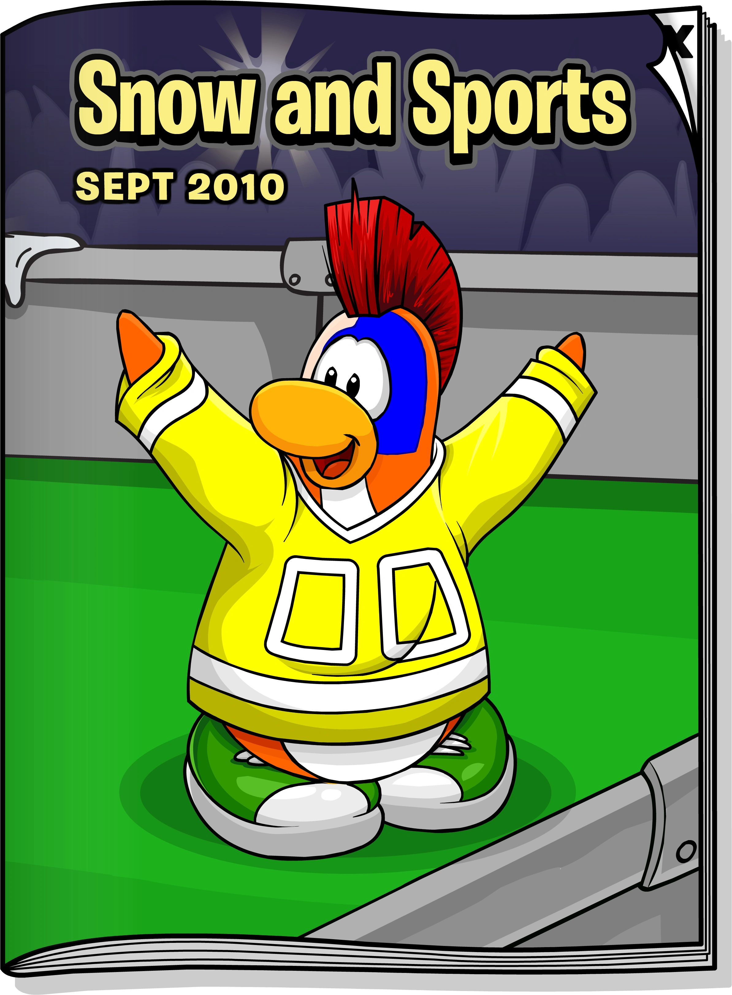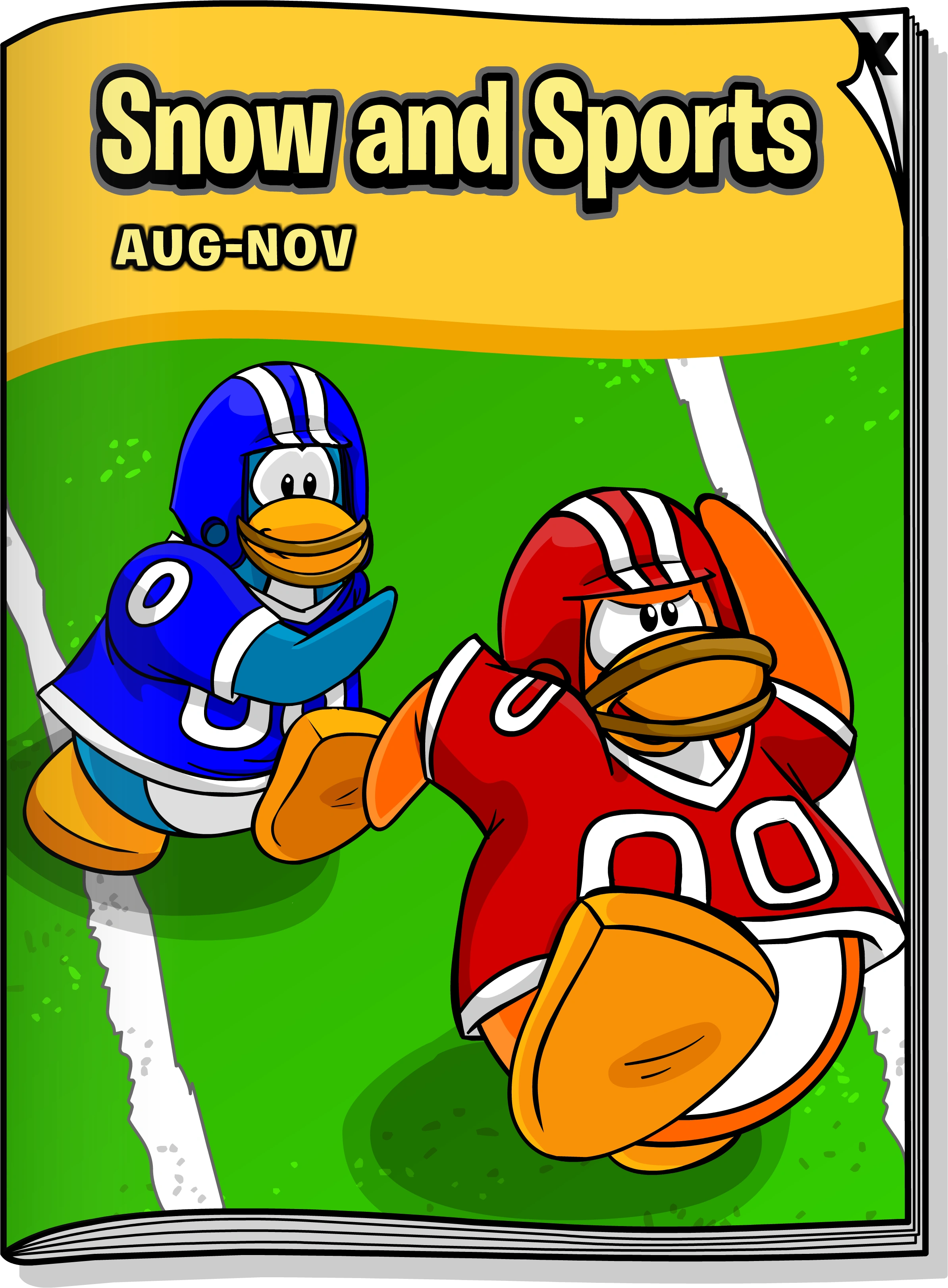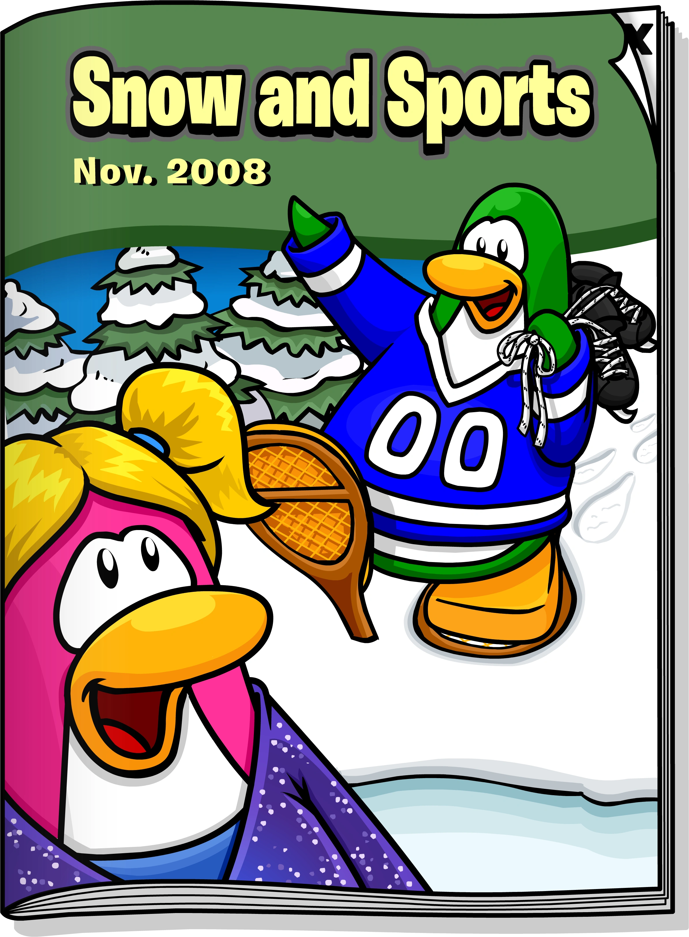 Snow and Sports was Club Penguin's sports catalog. It was found in the Sport Shop before May 27, 2010, but has been moved to the Stadium due to the Sport Shop's destruction during the Popcorn Explosion. The first edition was released on August 31, 2007, exactly the same day the Sport Shop was renovated. On this page you can see all the covers of all sports and snow catalogs that existed in the history of Club Penguin. I hope you enjoy.