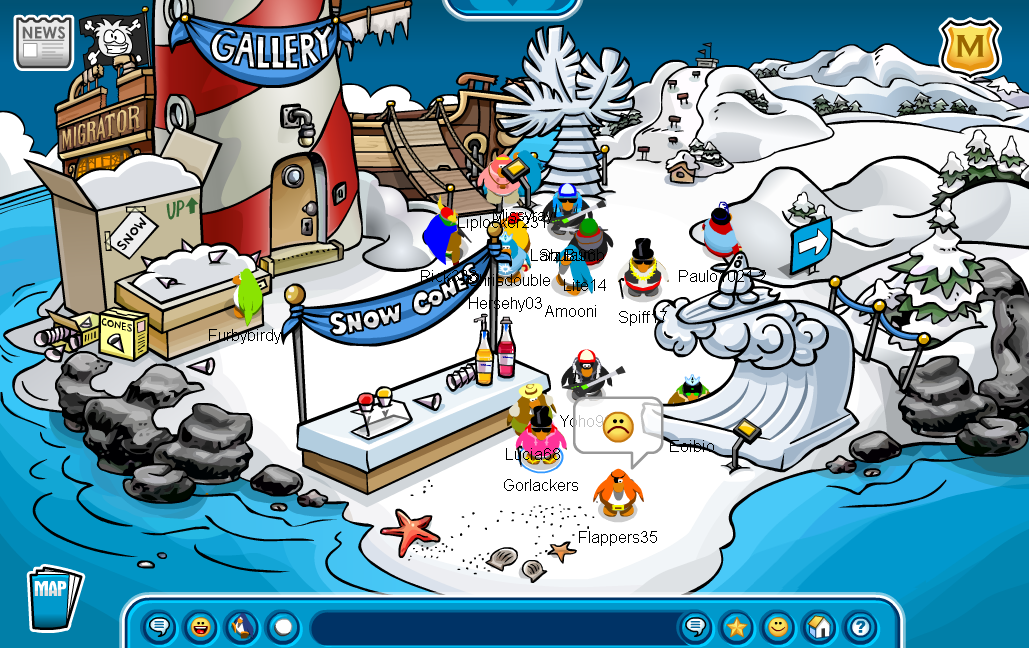 We celebrate the two years of Club Penguin!. We blow the cake candles and read the second yearbook in the history of the game. As it is with all the coffee shop was decorated !. Happy Birthday Club Penguin!.