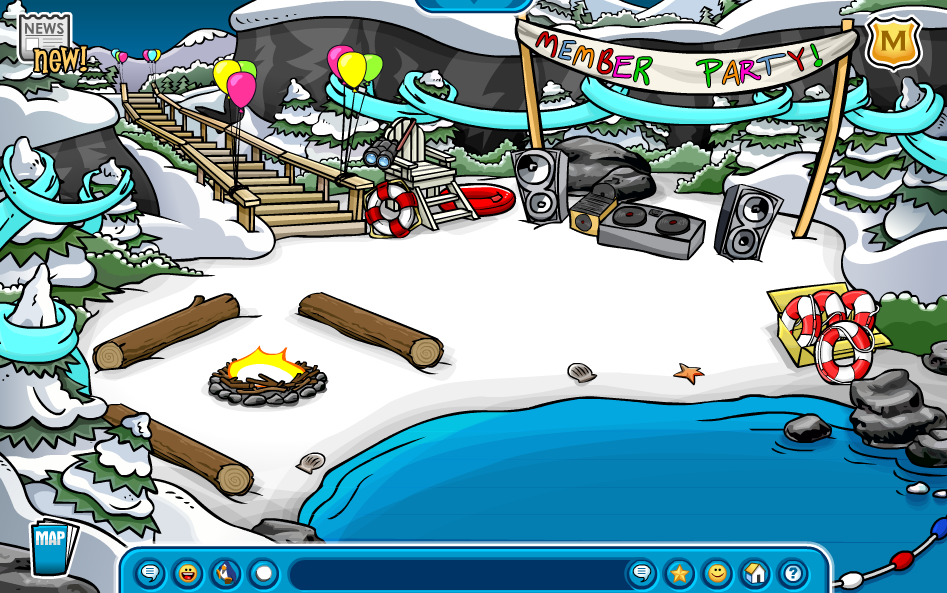 Was a camp missing? Well, the first party with this theme arrived on the island! The island became a great camp, we ate some marshmallows and explored what was in it. Nothing bad!. It was also the first party held at Club Penguin under the name of Disney.