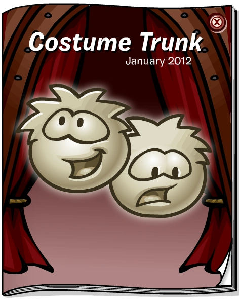 The Costume Trunk was a catalog in Club Penguin. It offered clothing items and backgrounds from the different stage plays. It was originally available at the Stage, and was then moved to the Mall following the Stage's removal. On this page you can see all the covers of all the catalogs that existed of this type in the history of club penguin.