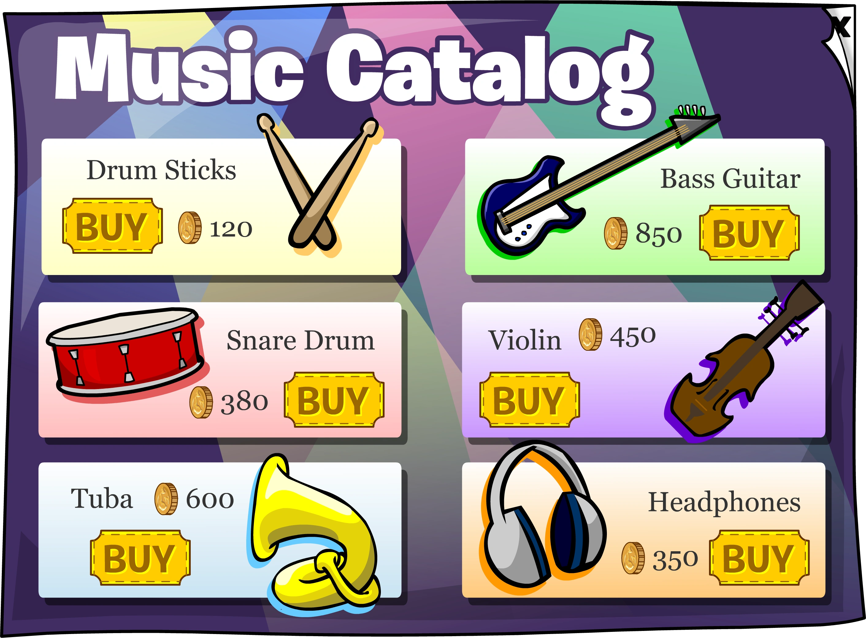 Here you will see all the music catalogs that existed in the history of club penguin.