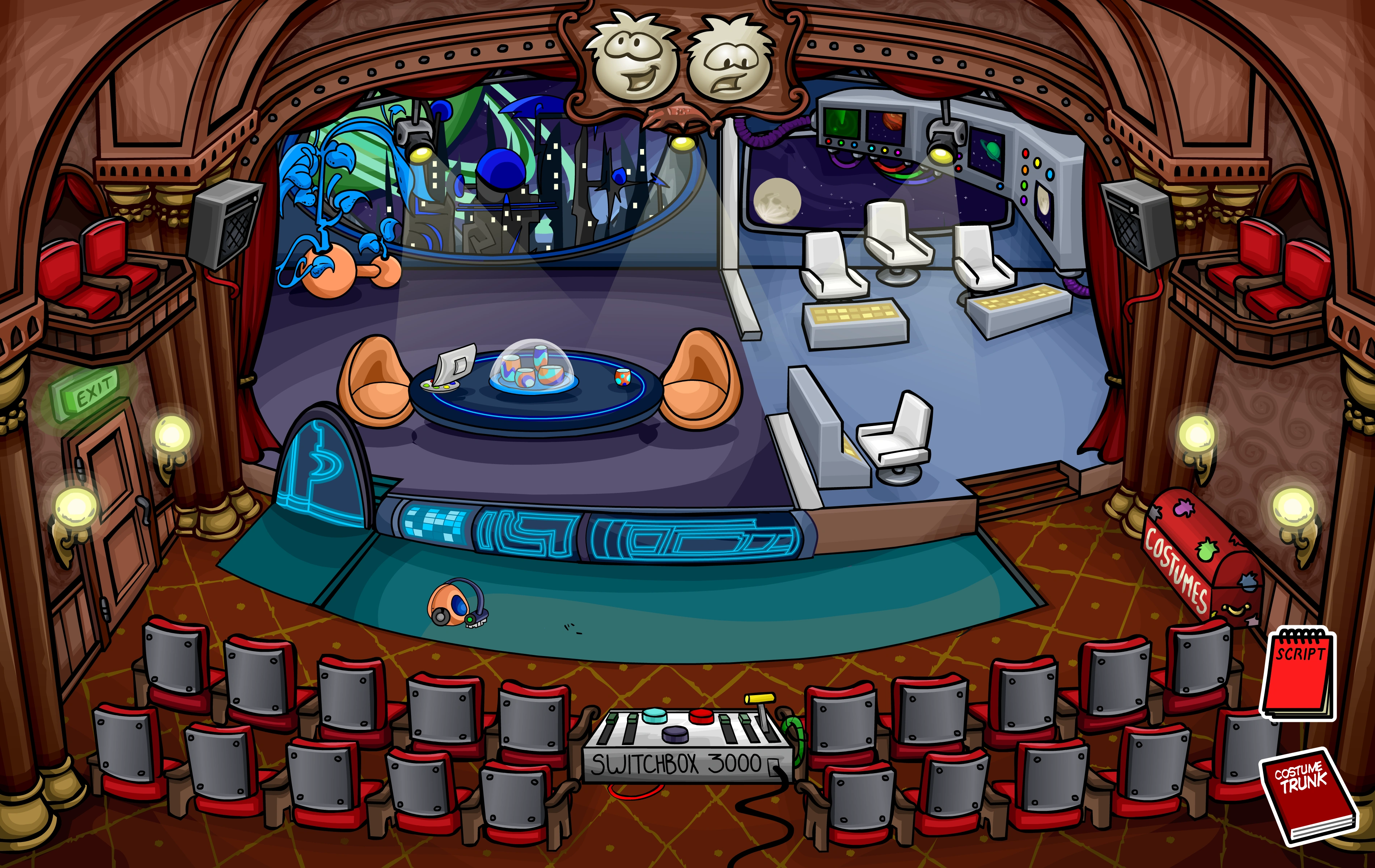 Space Adventure was a play at the Stage. It was the first ever Stage play in Club Penguin. It first premiered in November 2007 and had an encore in March 2008. It did not return to the Stage again before it was removed in June 2015.