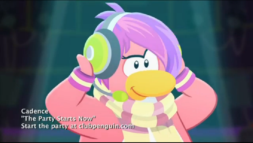 - The Party Starts Now (2012): The Party Starts Now a Club Penguin Animated Shorts episode by Cadence aired on YouTube on July 1st, 2012. Cadence and many dancing penguins can be seen. It is a music video episode. The full version was released on July 12th, 2012. During the Ultimate Jam, the sneak preview was on Disney Channel.