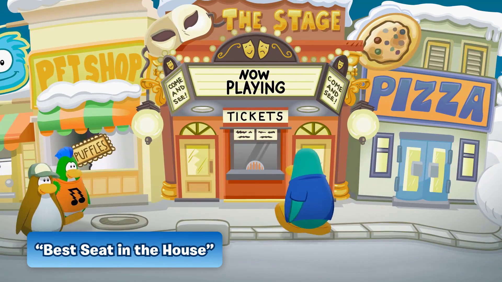- Best Seat in the House (2012): It first aired on March 27, 2012. The episode shows a penguin attempting to find a seat at the Stage.